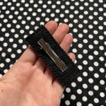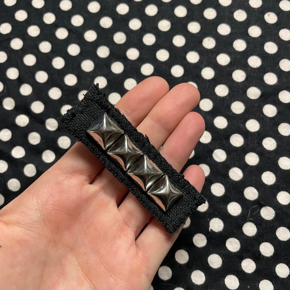 These studded hair clips are made with scrap duck canvas with a felt back and stainless steel studs